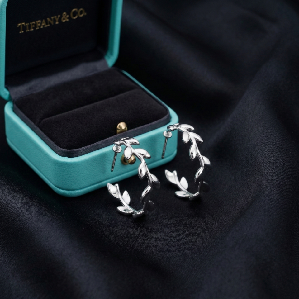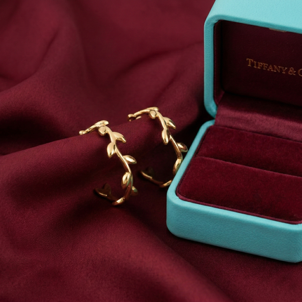 Tiffany Olive Leaf Hoop Earrings