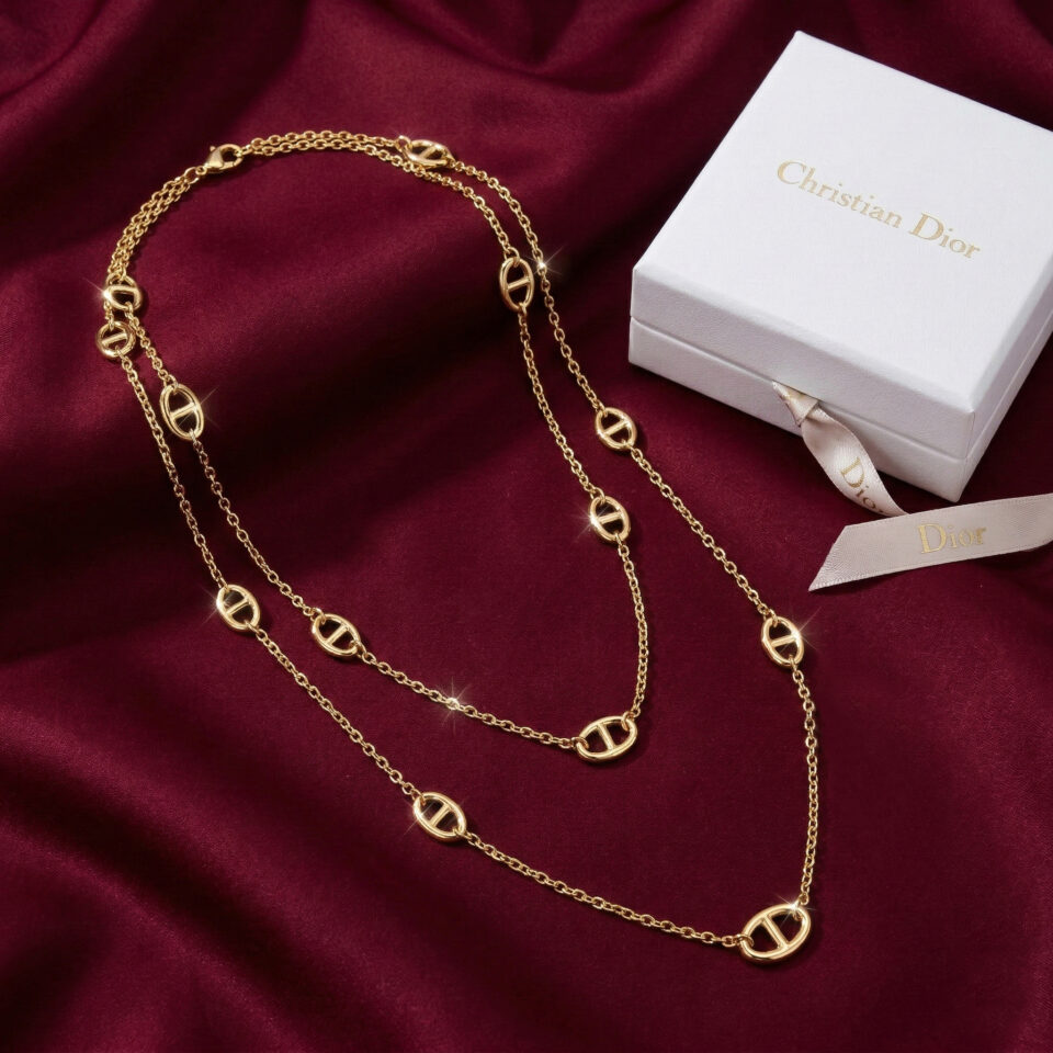 Dior Luxury Style Designer Pig Nose Necklace, Gold Filled