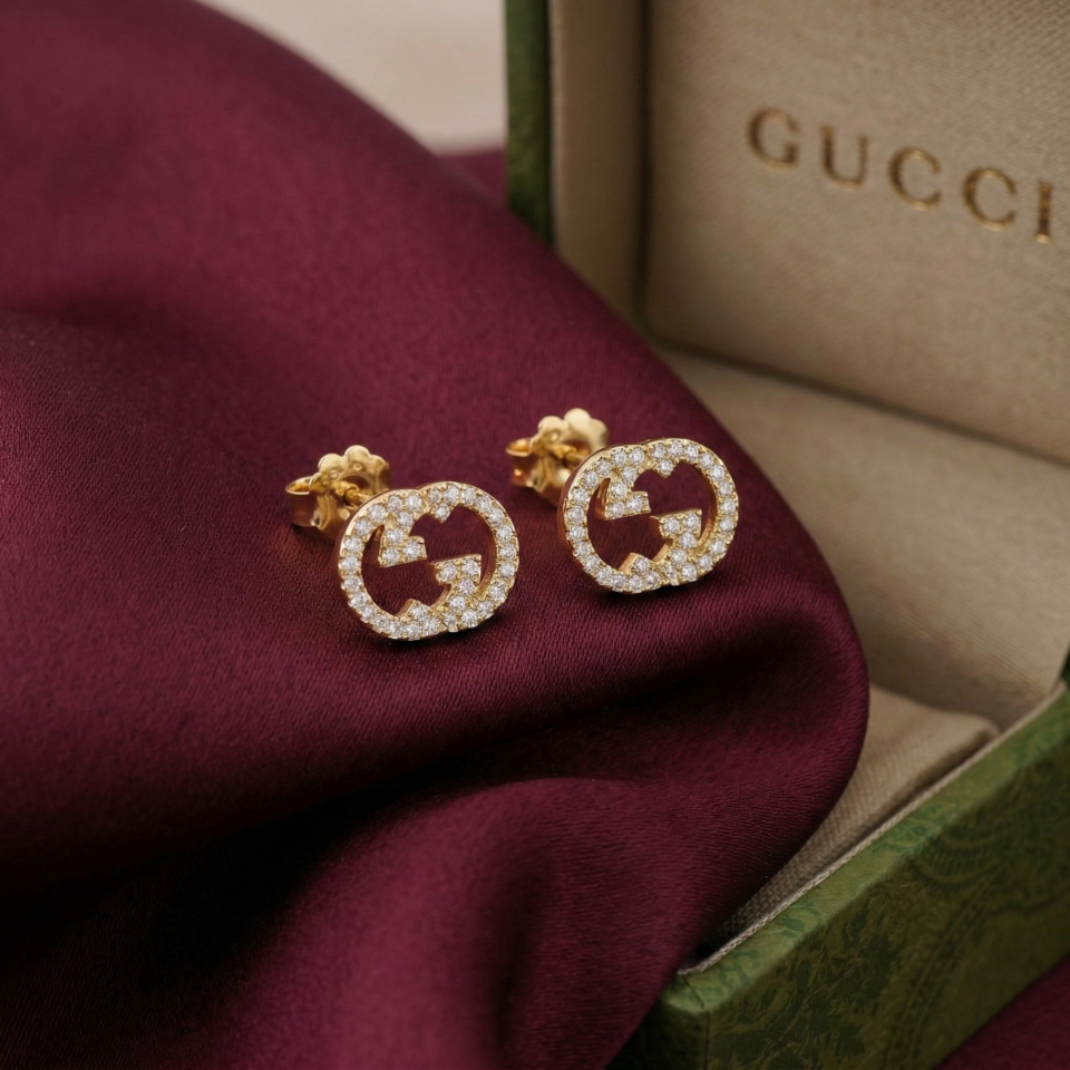 Gucci Interlocking studs Earrings, Gold Filled