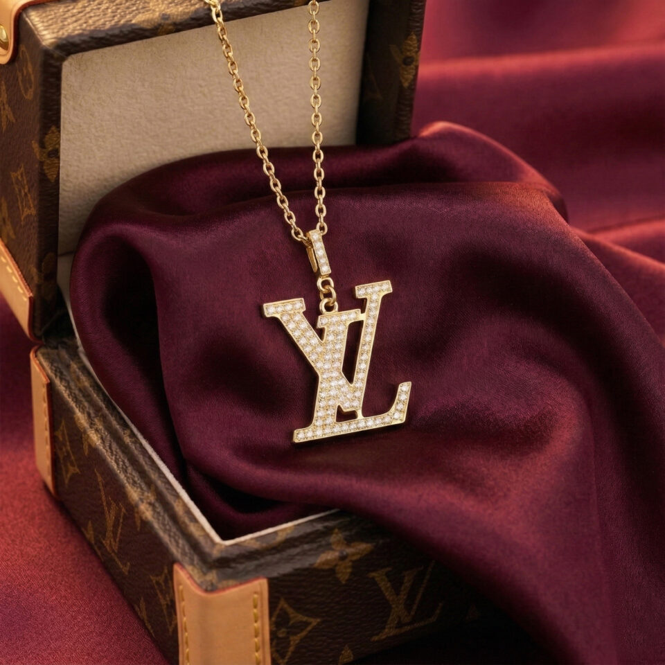 Unisex LV Large Pendant Necklace, Gold Filled