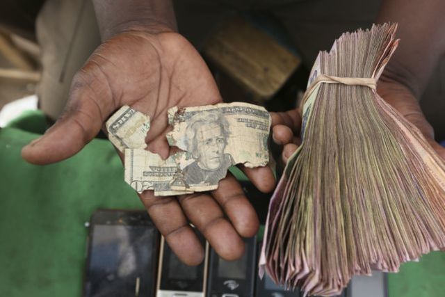 Ở nhiều thành phố trên khắp đất nước Zimbabwe, những người buôn bán tiền cũ đứng thành hàng dài trên phố, cầm cả tiền địa phương lẫn tiền đô la mỹ. Tờ 1 đô la trong tình trạng tốt sẽ được trả thêm 10%. Người bán nói rằng họ mua những tờ tiền đẹp hơn từ các chủ cửa hàng bán lẻ, công nhân và những người bán hàng rong.