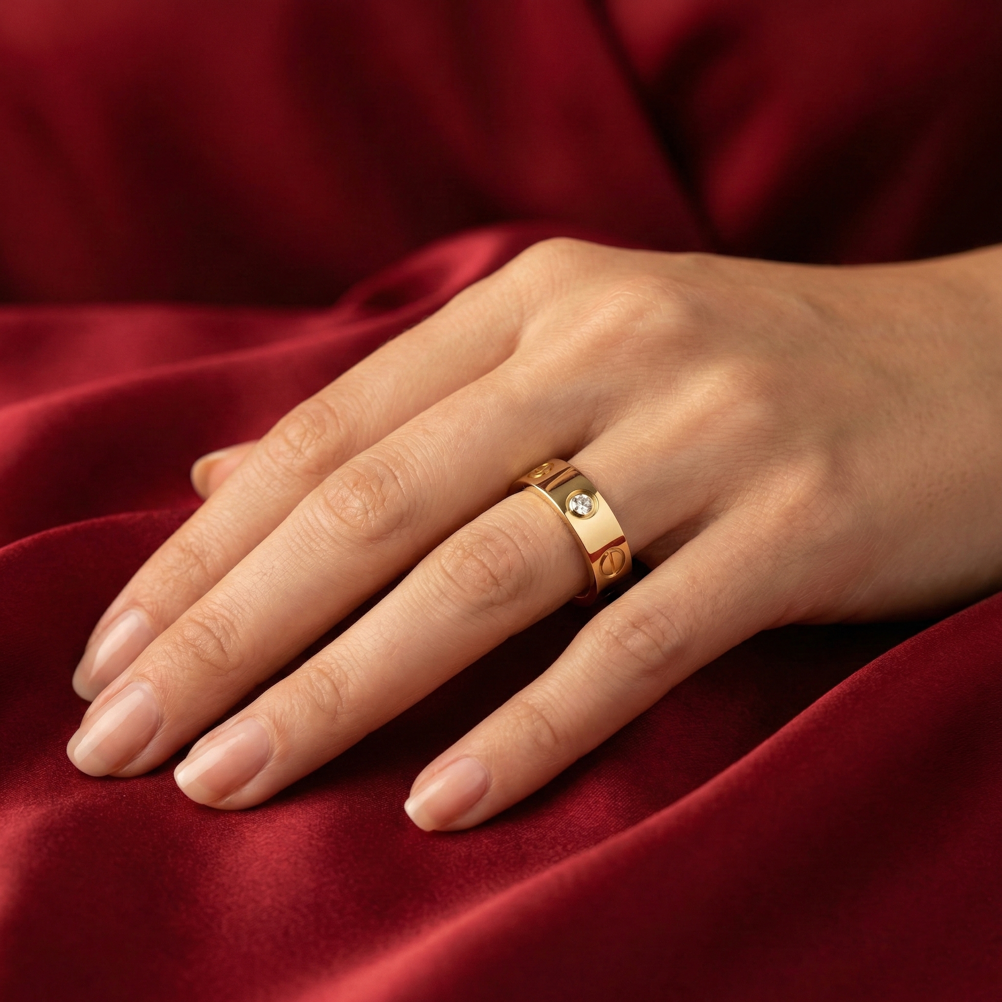 The Cartier’s, LOVE Ring 3 Stone, Gold Filled masterfully blends bold design with enduring elegance. This exquisite piece features a fully paved setting of sparkling cubic zirconia stones, creating a dazzling play of light. The distinctive screw motifs and ideal oval shape establish this creation as a timeless tribute to romance.