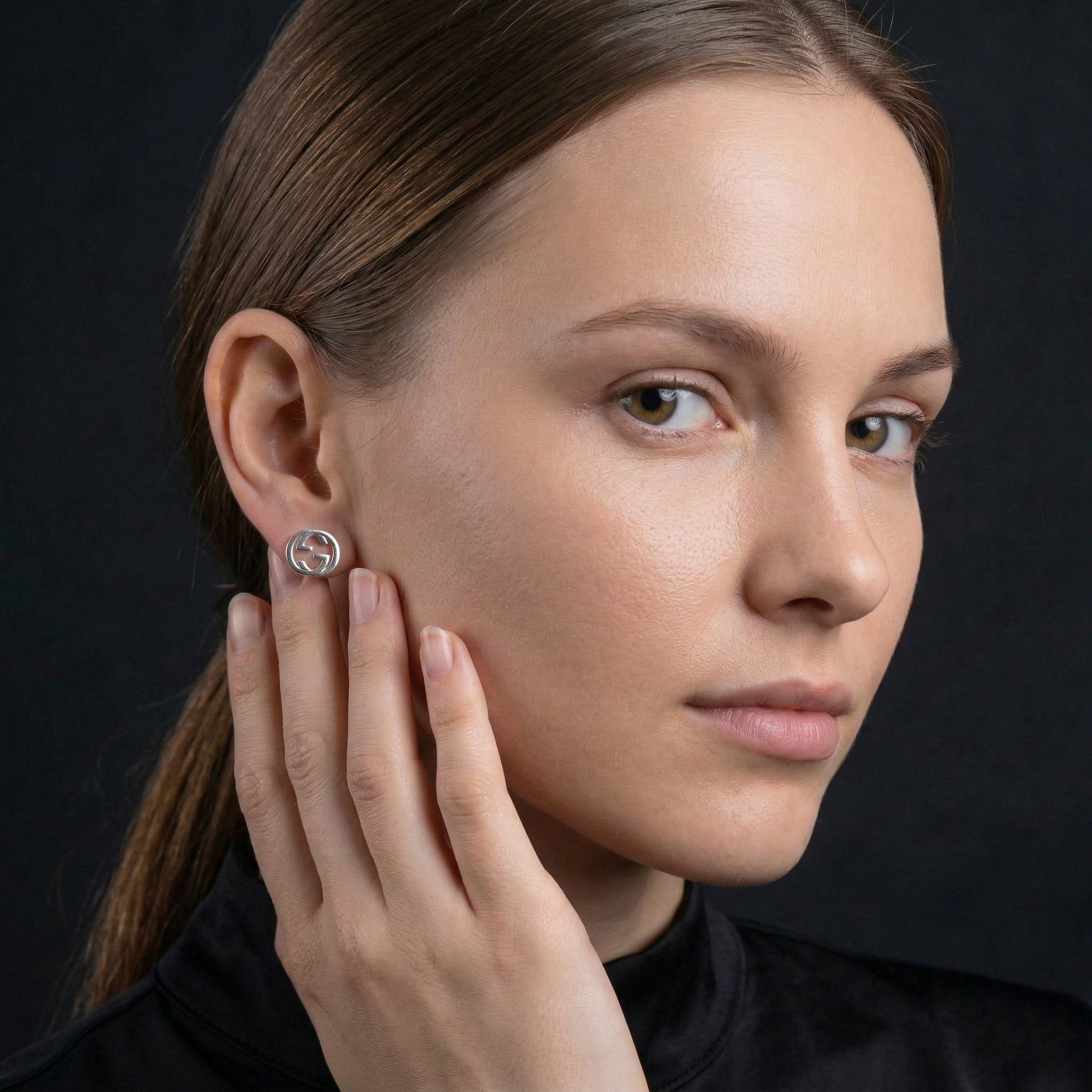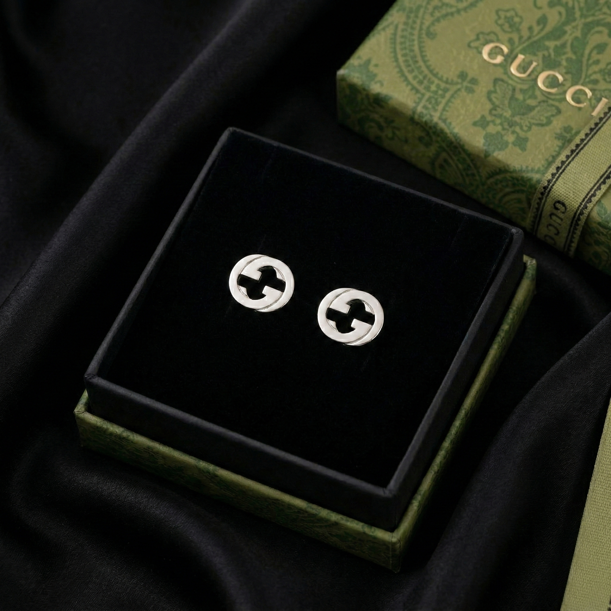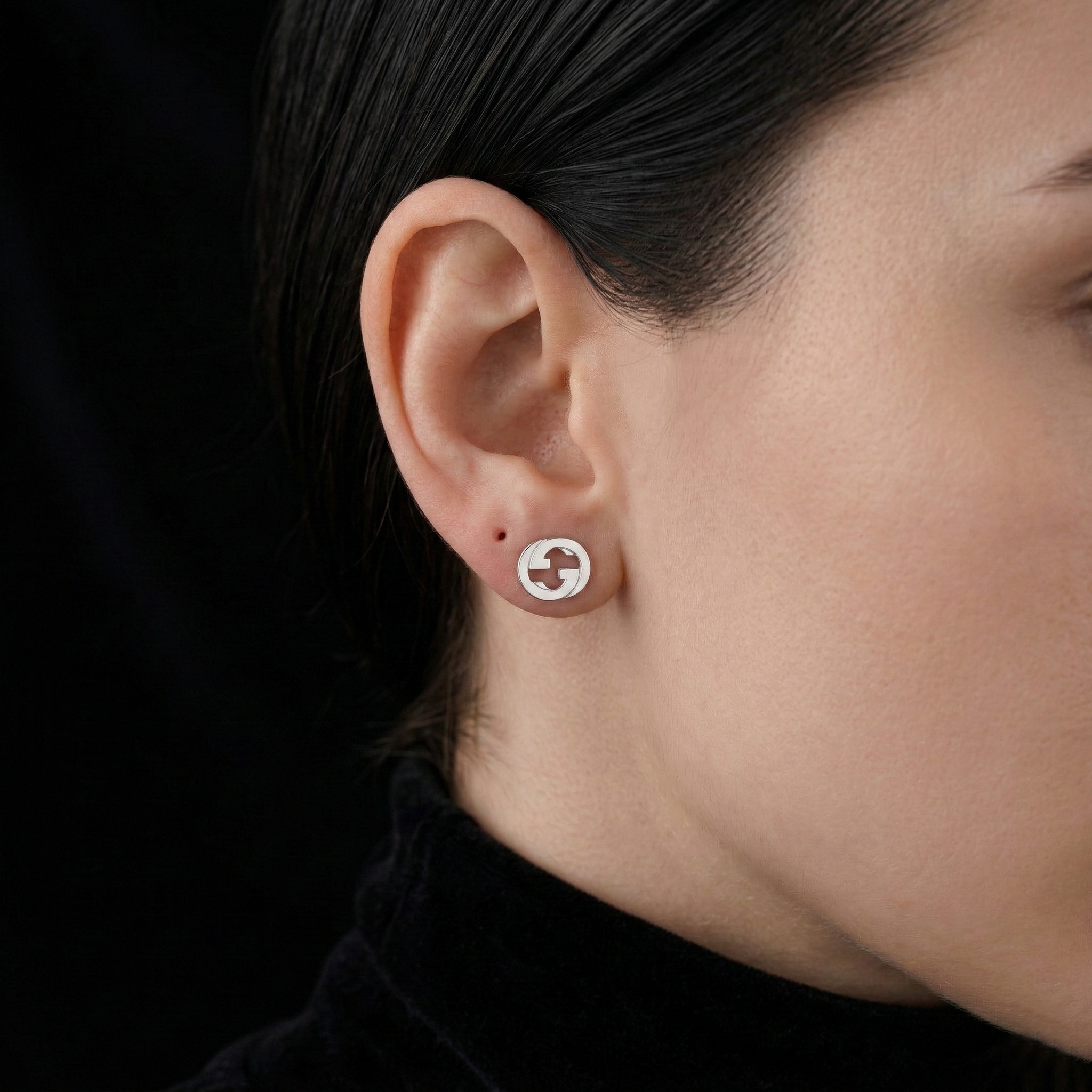 These earrings are part of our Interlocking jewelry collection, drawing inspiration from geometric logos. The design features a prominent, stylized GG logo, creating a modern and sophisticated look.