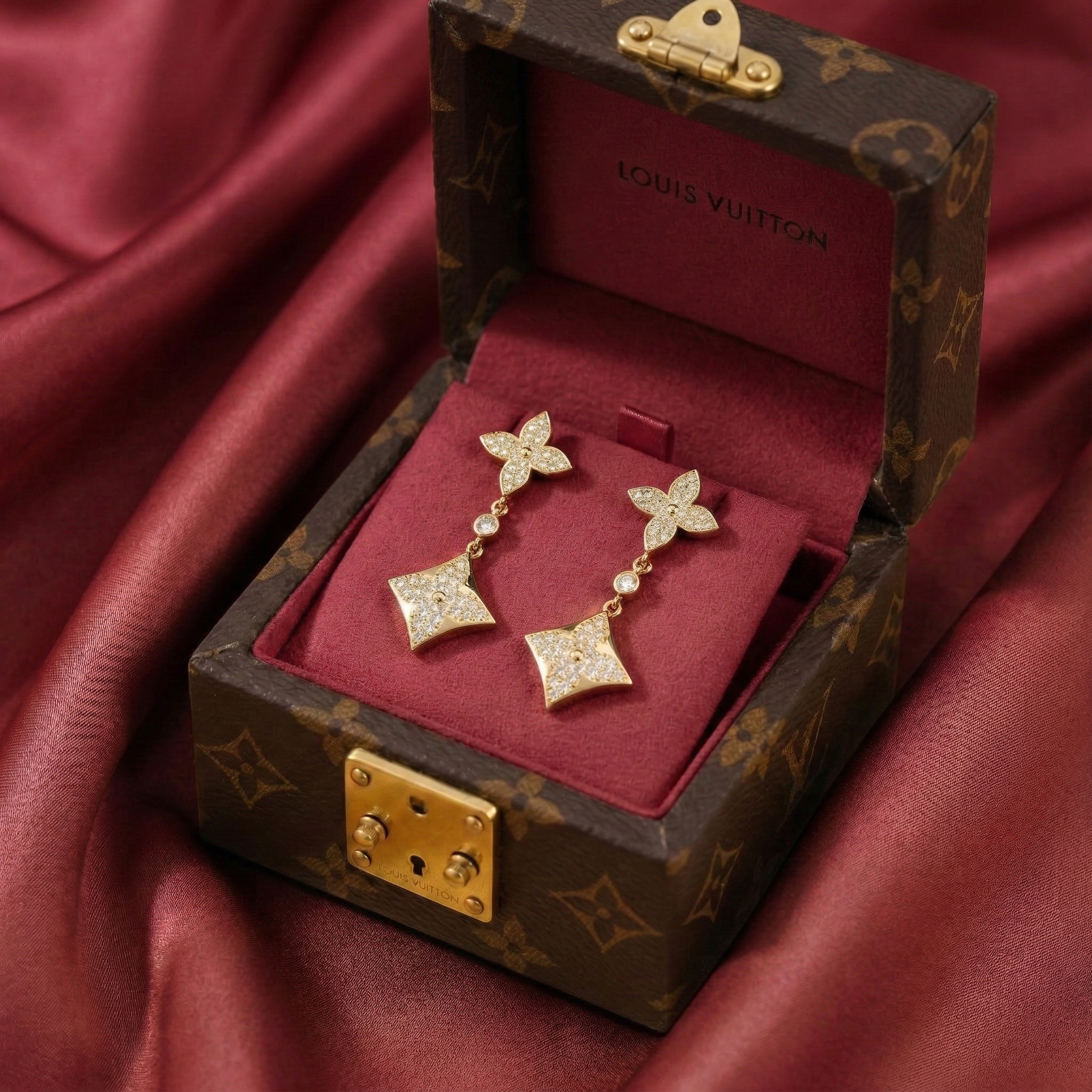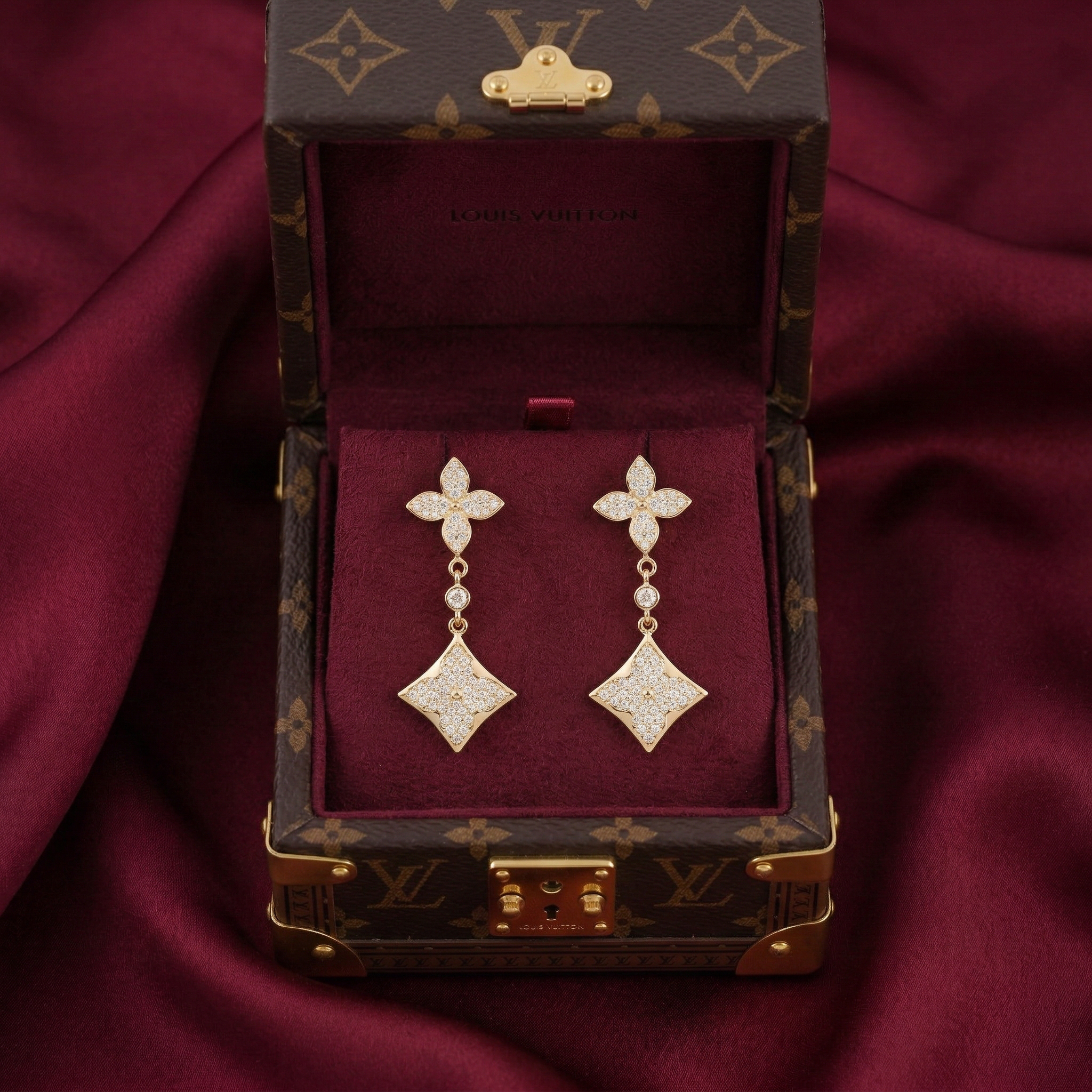 The Color Blossom earrings are exquisitely crafted from 925 silver gold-filled 3 microns thick, featuring the iconic Monogram flower design—a motif created by G.e.o.r.g.es V.u.it.t.o.n in 1896. Dazzling and feminine, the cubic zirconia stones on these earrings will sparkle with your every movement and gesture, adding a brilliant highlight to any elegant outfit.