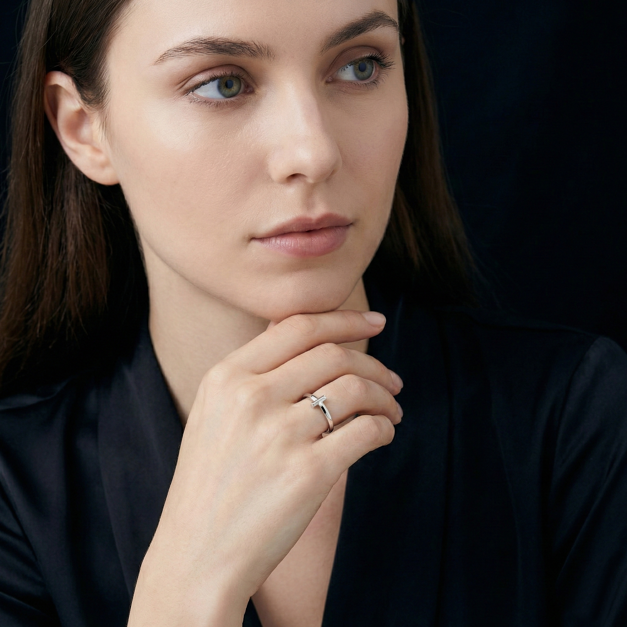 The Tiffany T Ring embodies refined sophistication and contemporary style, showcasing the distinctive aesthetic of Tiffany & Co. Its design features a stylized “T” motif, meticulously crafted from 925 sterling silver, exuding both strength and understated luxury.