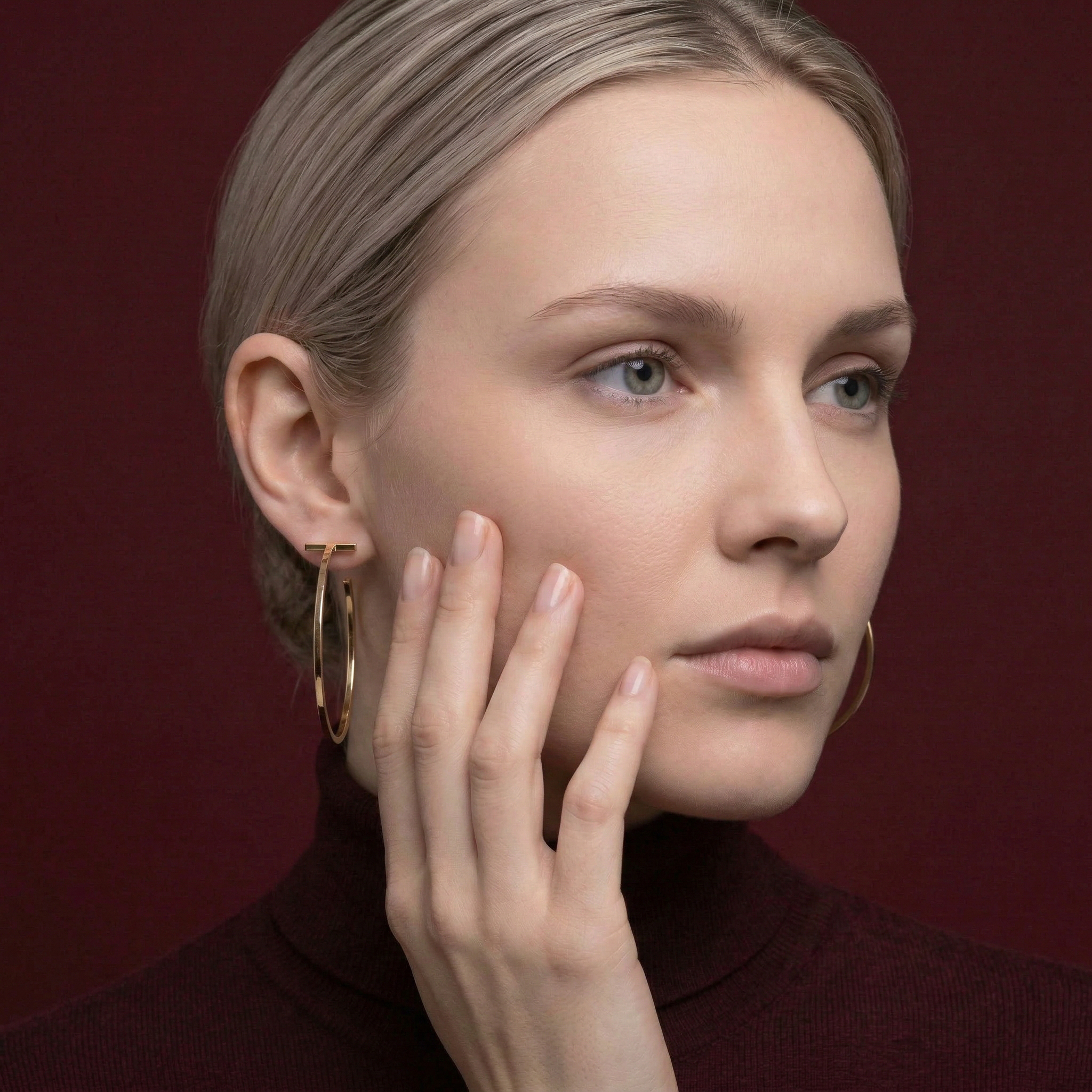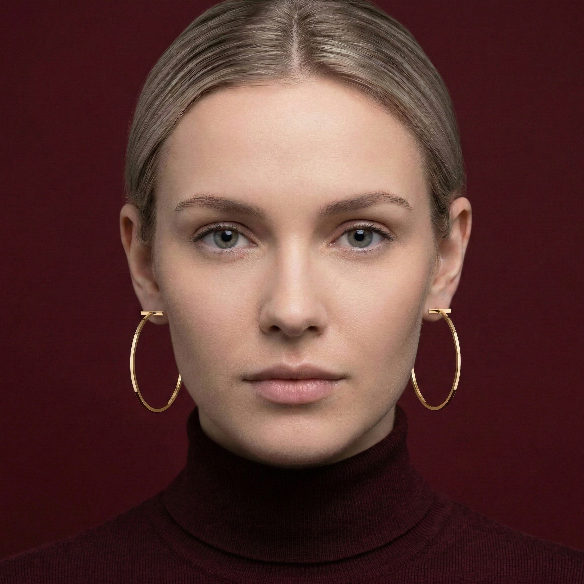 The perfect balance between strong lines and effortless grace delivers both power and sophistication, ideal for those who love statement-making style. The larger-than-average size makes these hoops a standout accessory that enhances your natural beauty while expressing your unique personality. An exceptional gift choice for special occasions.
