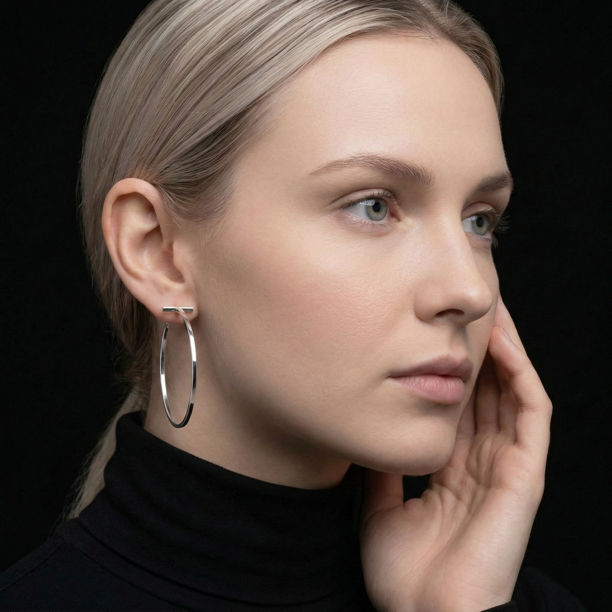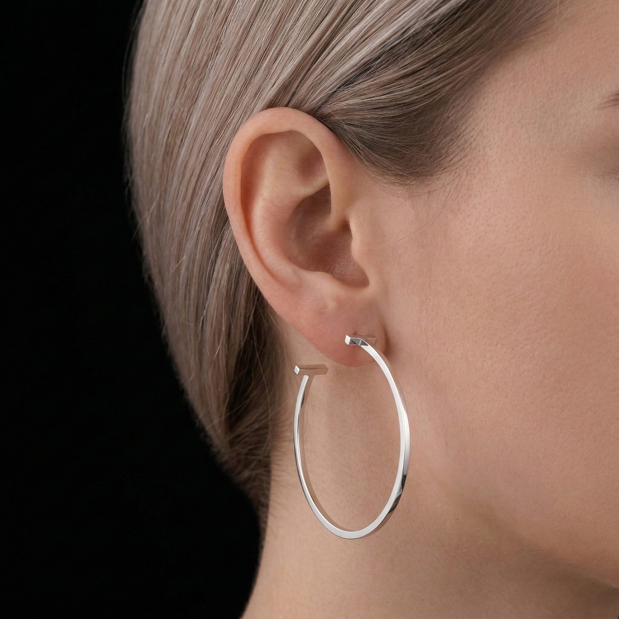 The perfect balance between strong lines and effortless grace delivers both power and sophistication, ideal for those who love statement-making style. The larger-than-average size makes these hoops a standout accessory that enhances your natural beauty while expressing your unique personality. An exceptional gift choice for special occasions.