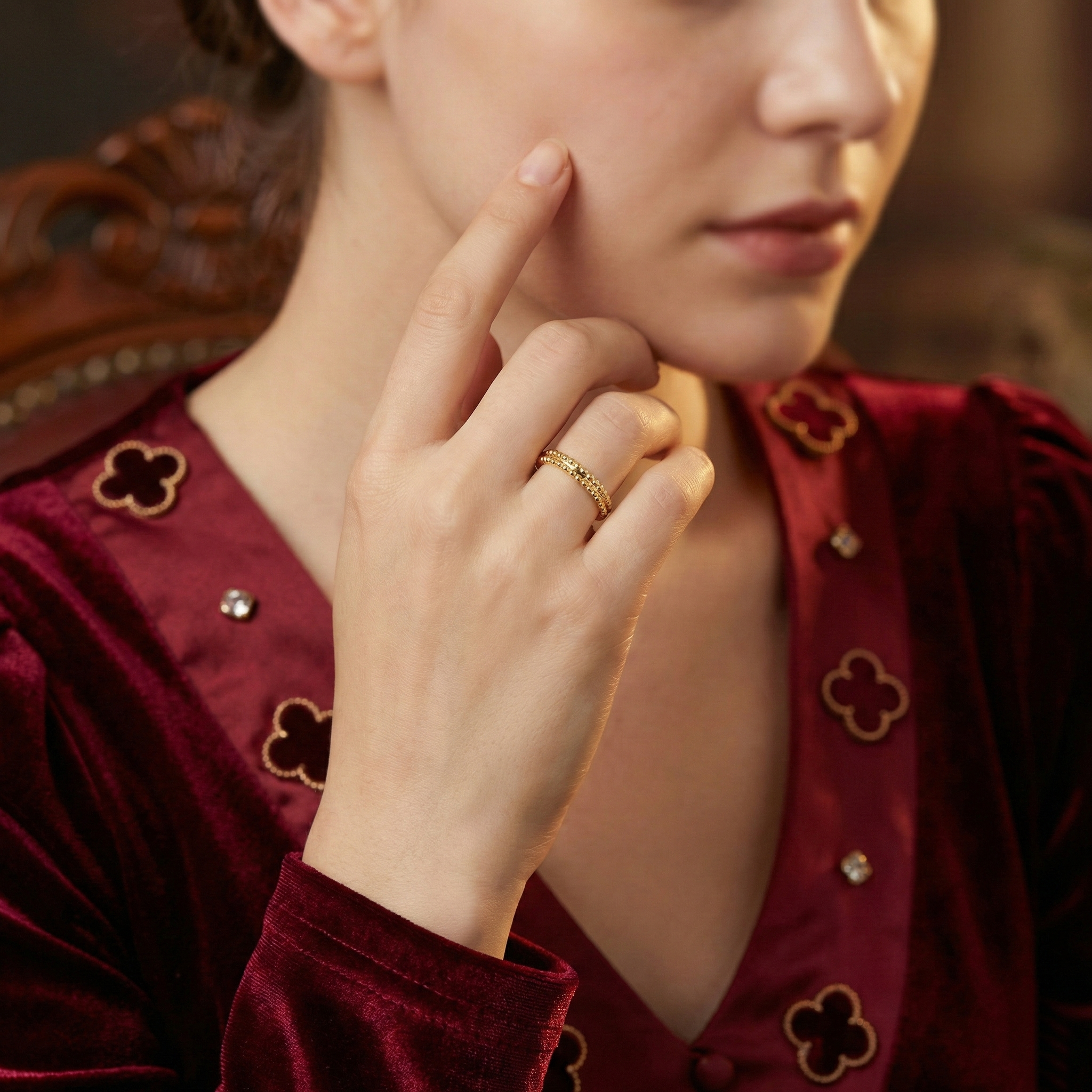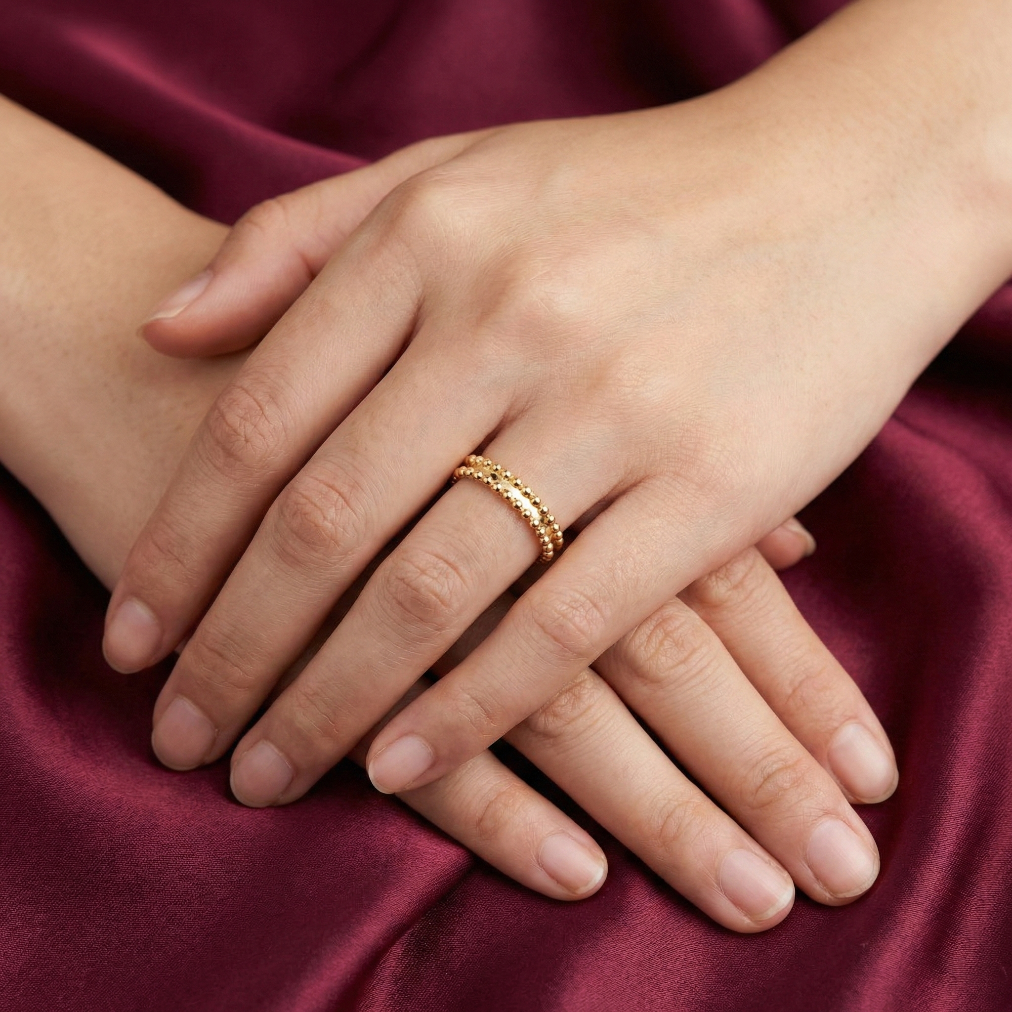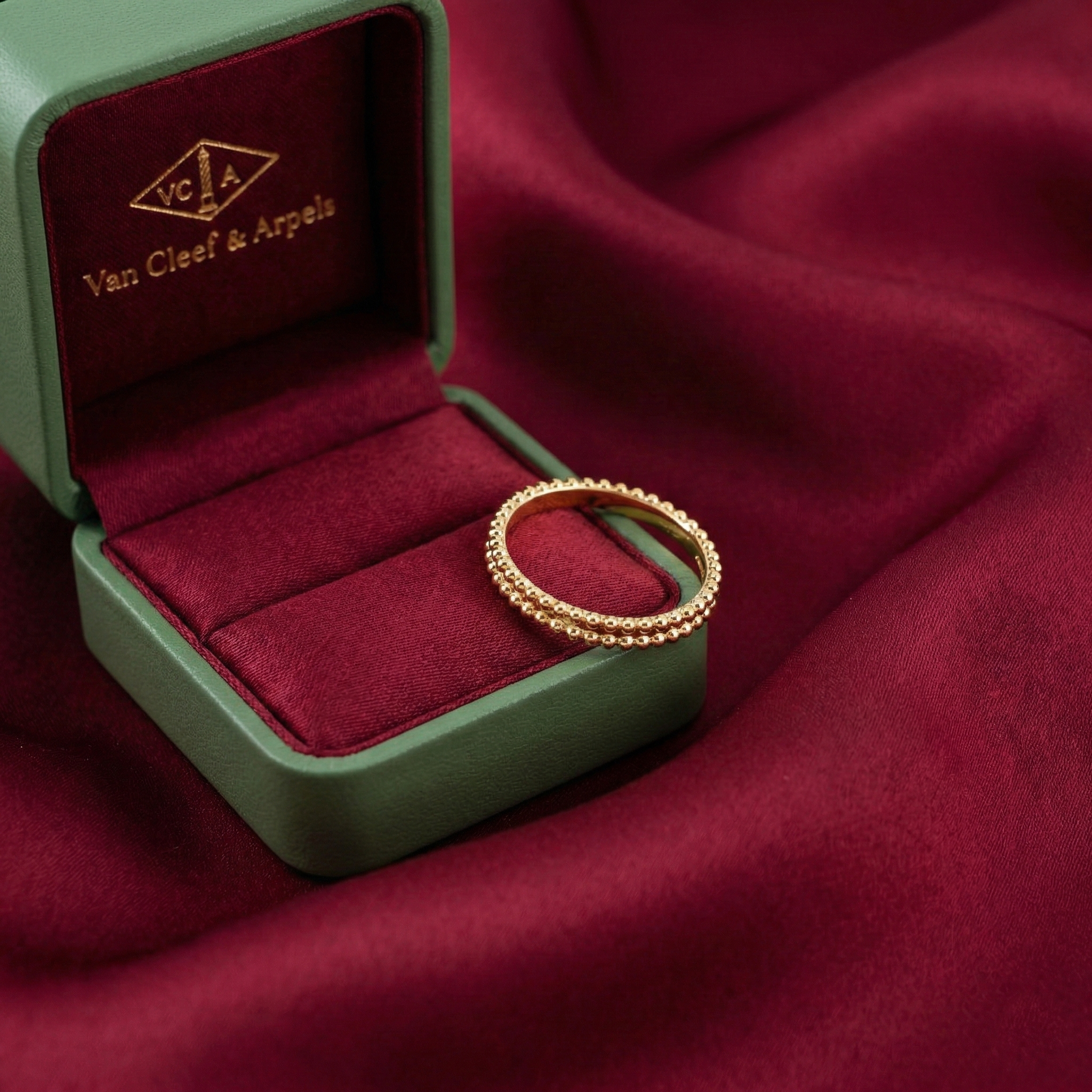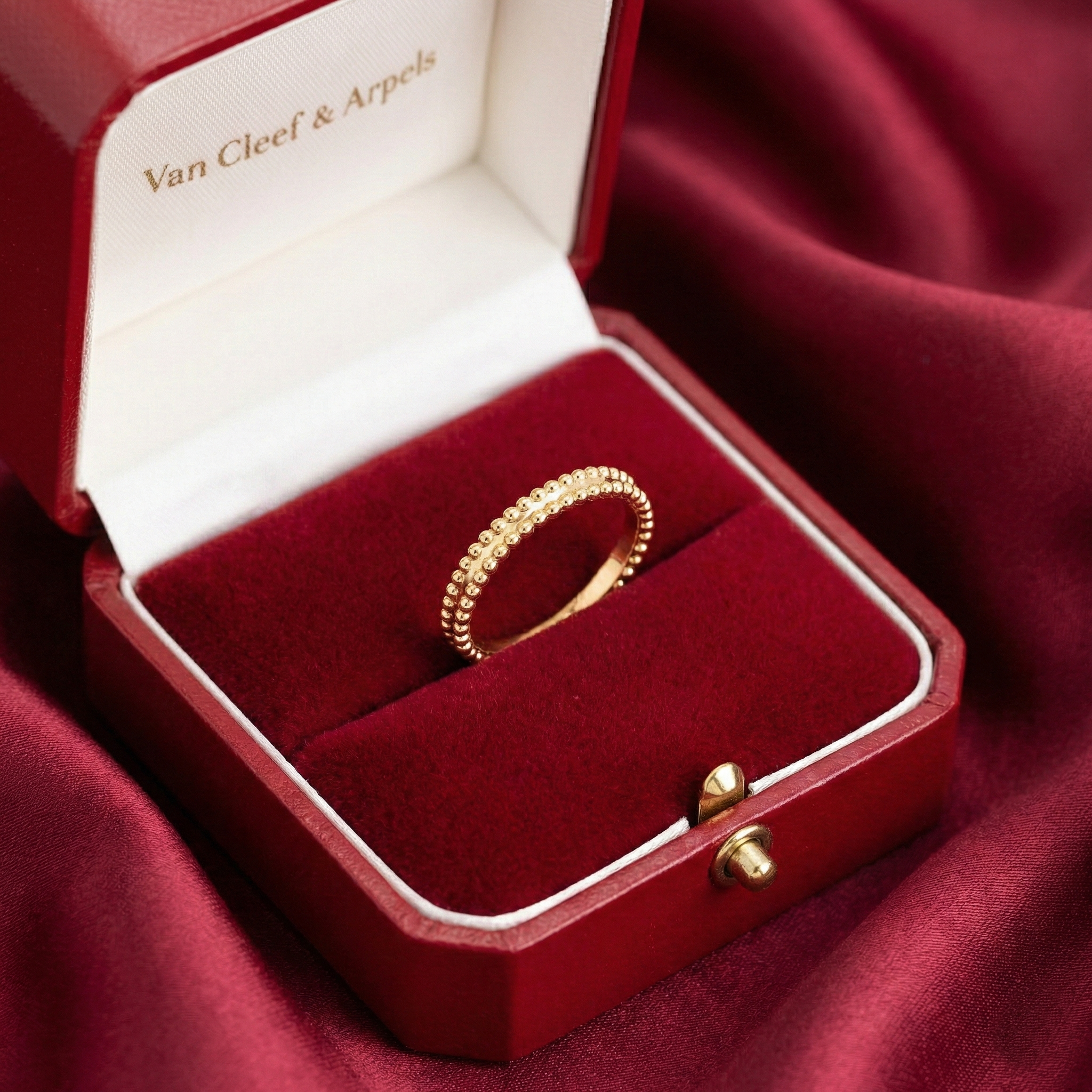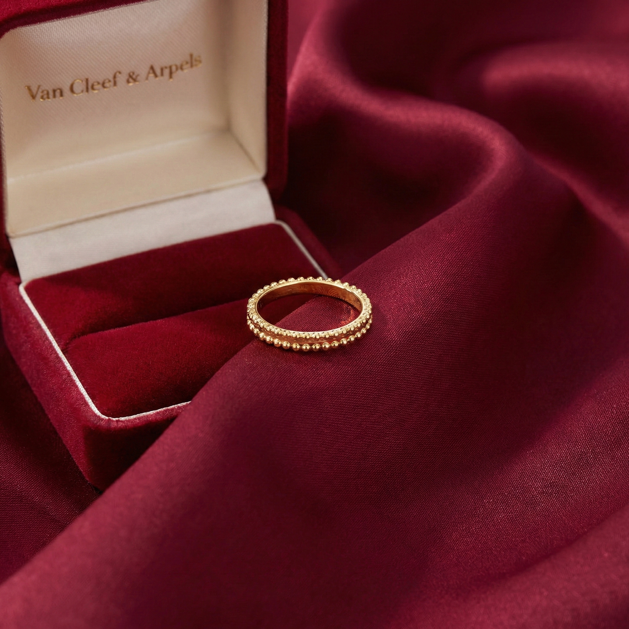 For connoisseurs of Van Cleef & Arpels’s signature craftsmanship, the Estelle Wedding Band is a love letter to understated luxury. This ring dances with light through its exquisitely beaded design?each tiny, polished sphere reminiscent of glistening dewdrops, arranged in two elegant rows for a texture that?s both softly tactile and strikingly refined.
