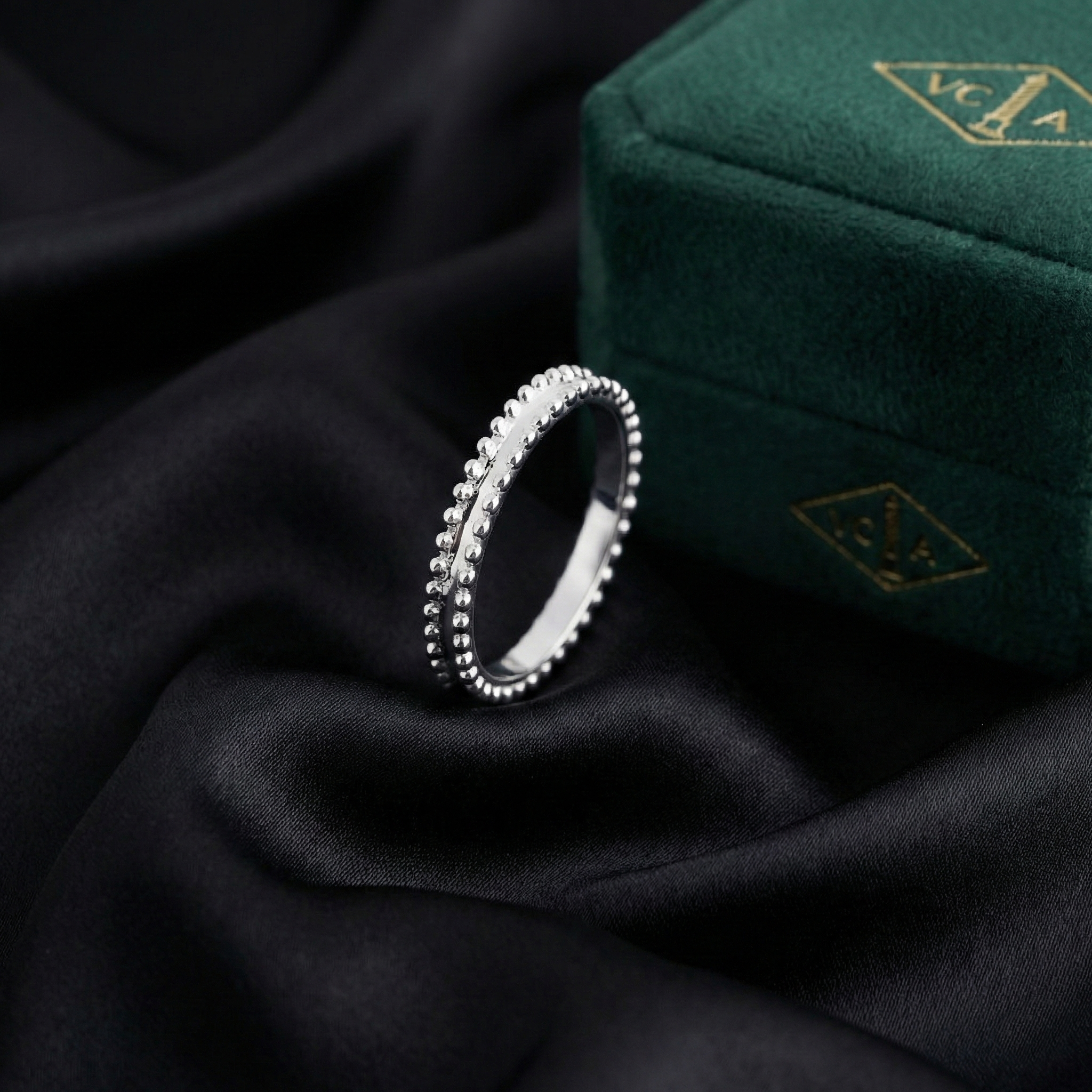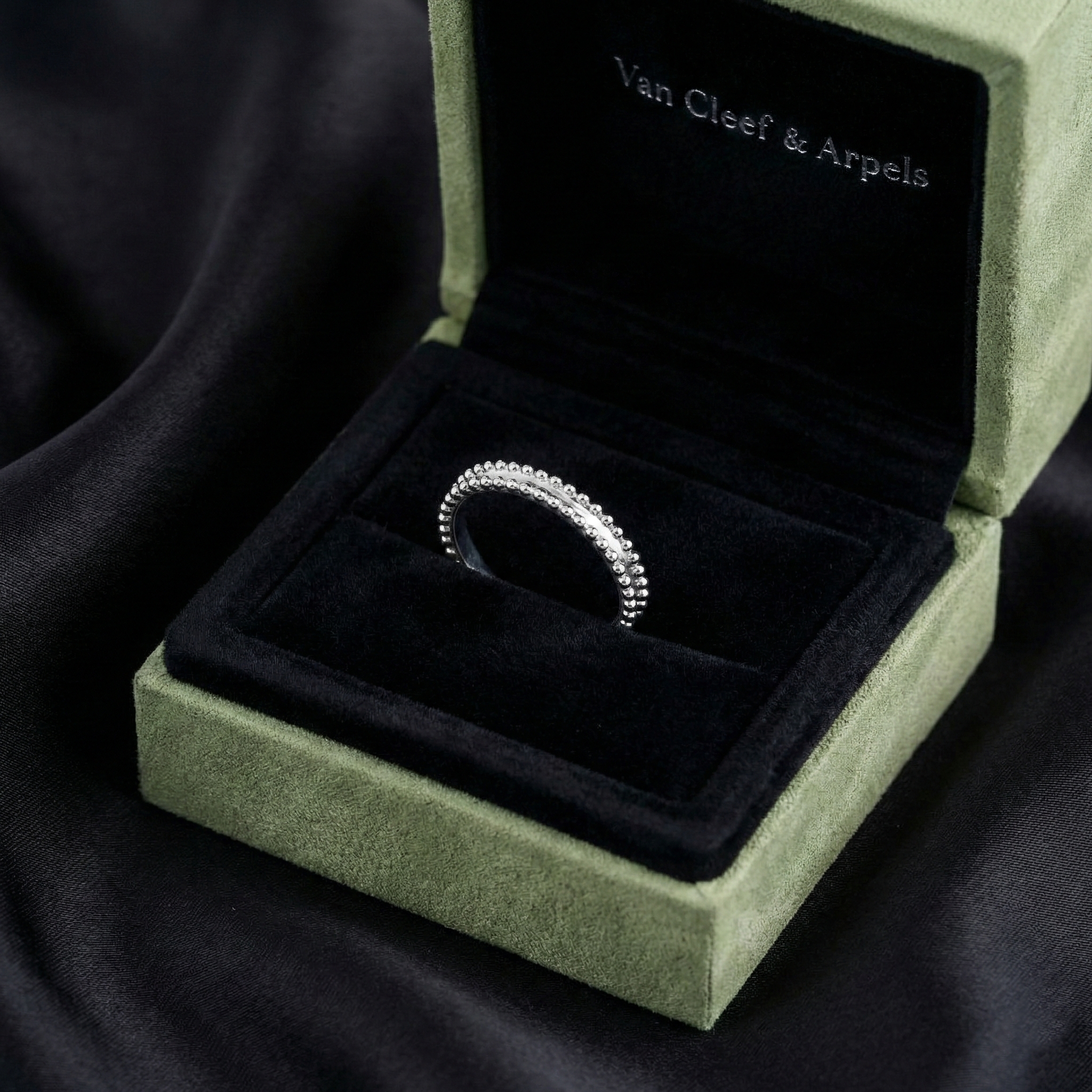 For connoisseurs of Van Cleef & Arpels’s signature craftsmanship, the Estelle Wedding Band is a love letter to understated luxury. This ring dances with light through its exquisitely beaded design?each tiny, polished sphere reminiscent of glistening dewdrops, arranged in two elegant rows for a texture that?s both softly tactile and strikingly refined.